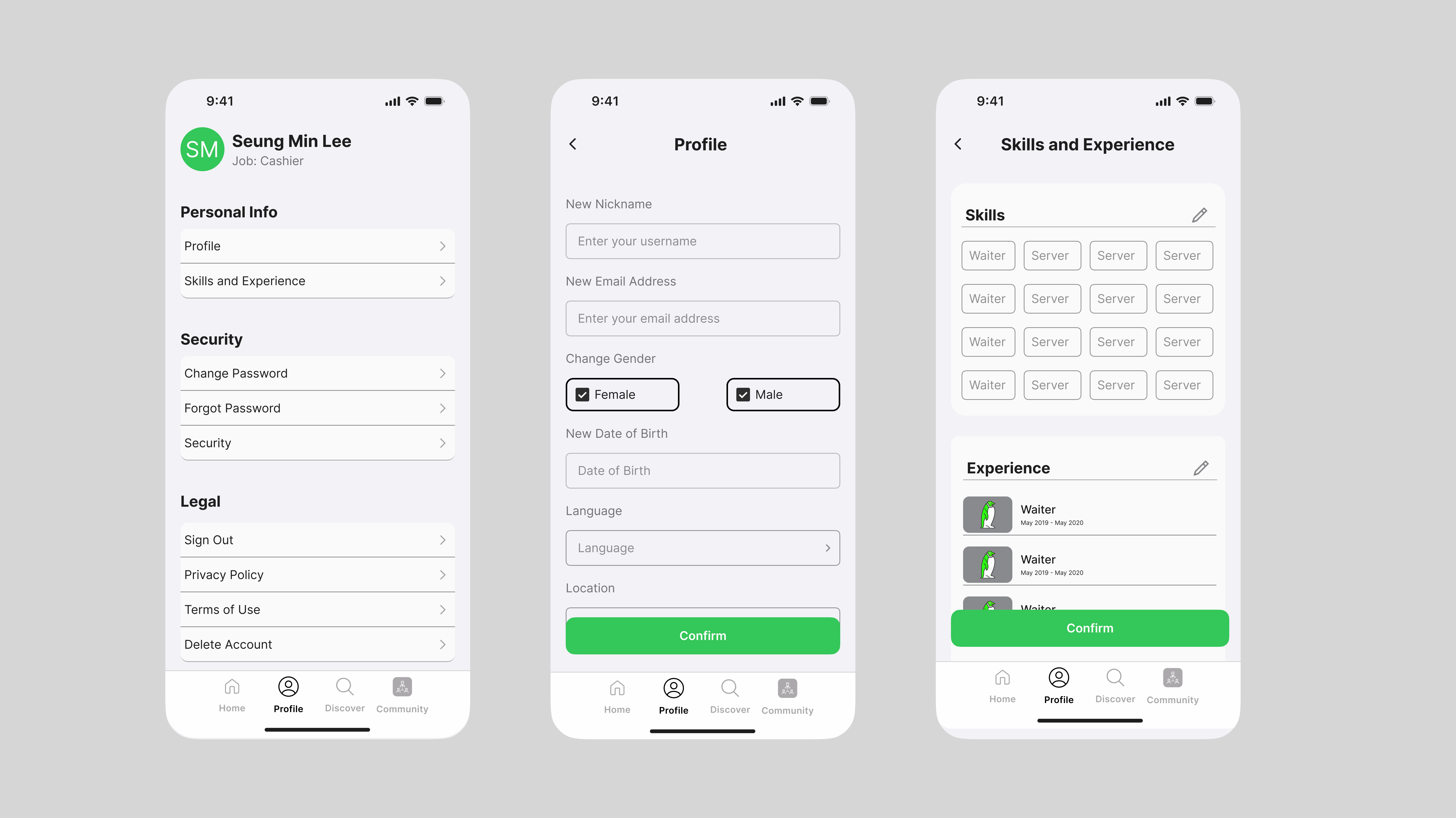 We started designing the skeleton of our product with three main changes: Home, Discover, Profile, and Community pages.