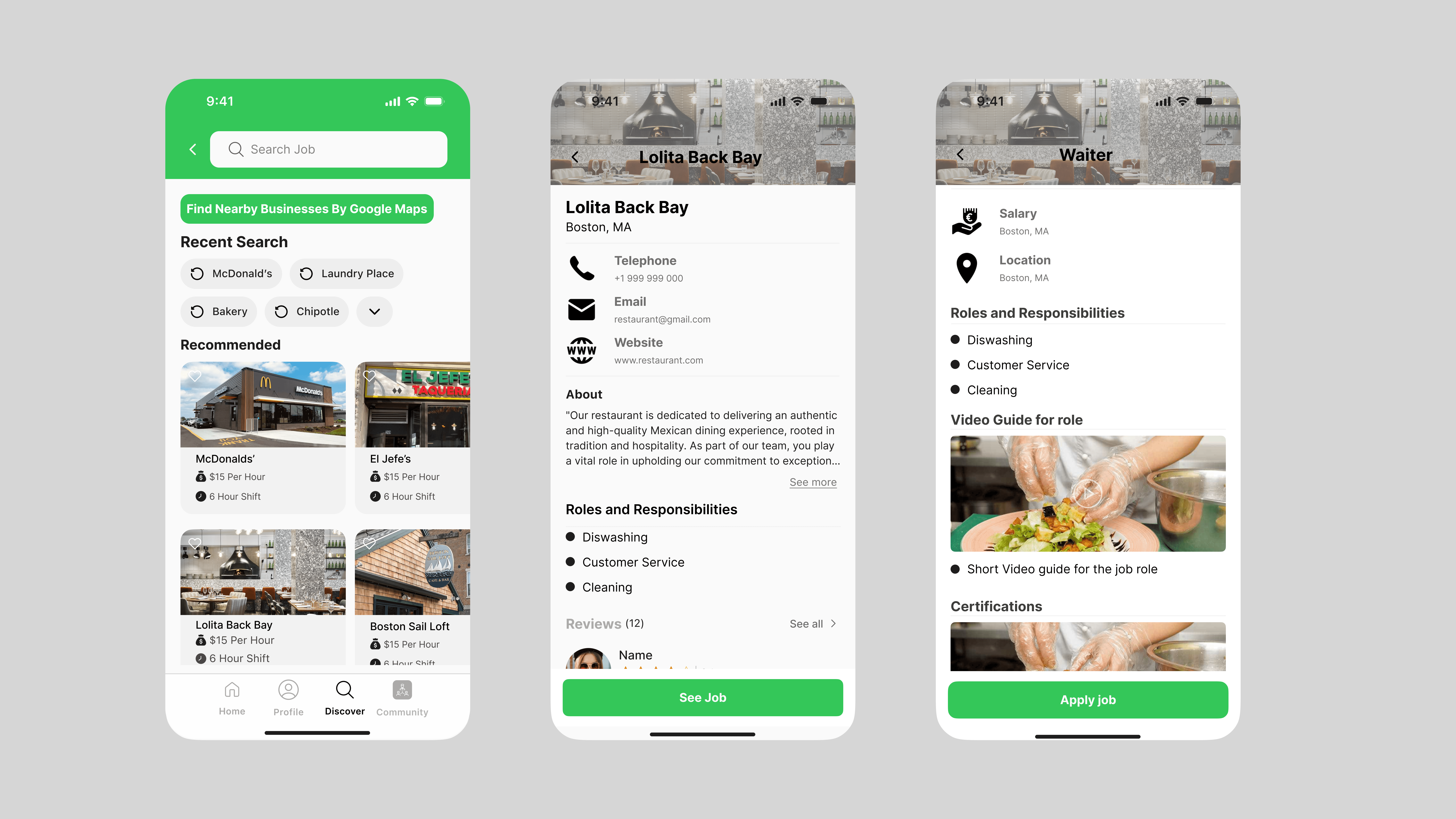 Designed a chat page for users to contact former workers or managers from nearby businesses